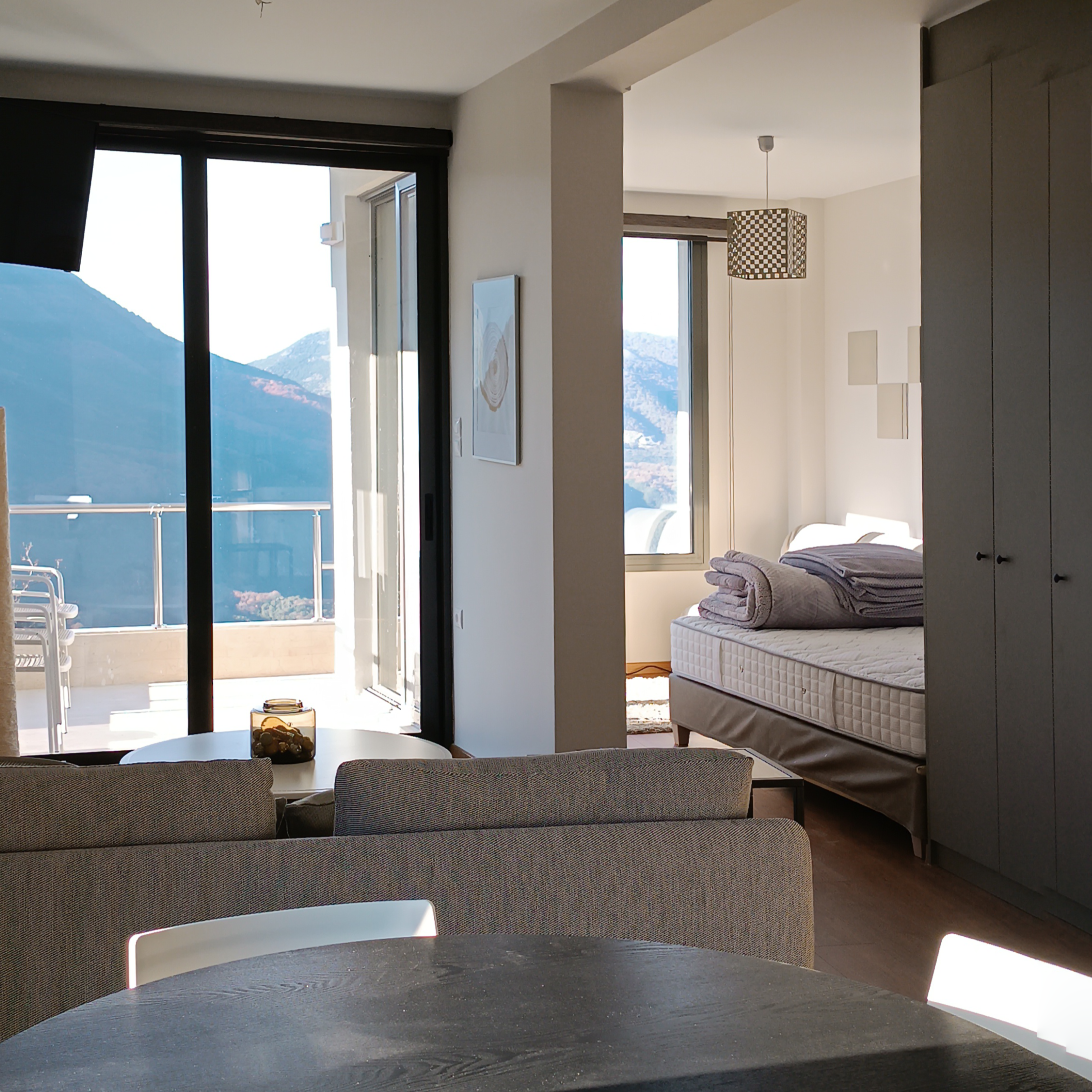Πριν την ανακαίνιση, ο χώρος ήταν κλειστός, περιορισμένος, χωρίς σύνδεση με το μοναδικό φυσικό τοπίο που τον περιέβαλλε. Με την παρέμβασή μας, ανοίχθηκαν μεγάλα ανοίγματα στις όψεις, επιτρέποντας στο φως και τη θέα να γίνουν πρωταγωνιστές του σχεδιασμού. Η επαφή με τη φύση της Ηπείρου έγινε άμεση και ουσιαστική, προσφέροντας μια εμπειρία διαμονής που συνδυάζει την ηρεμία της υπαίθρου με τη σύγχρονη άνεση.